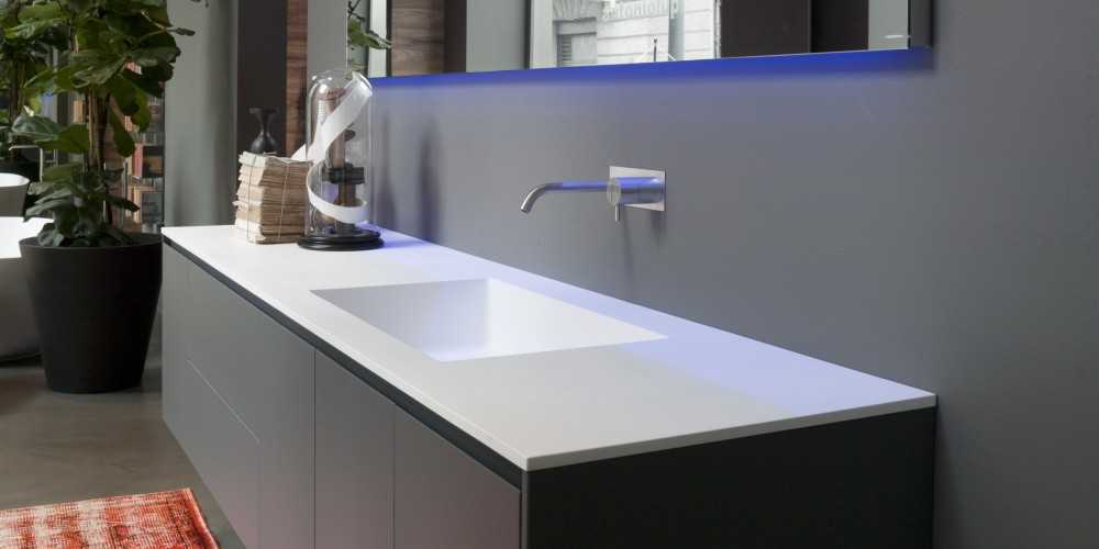 Эксплуатация такой столешницы значительно отличается от эксплуатации кухонной. На кухне больше агрессивных факторов, например, механические или высокотемпературные воздействия. В ванной комнате обычно не режут овощи, не отбивают мясо и не ставят на поверхность горячие кастрюли. Основными факторами негативного воздействия тут являются повышенная влажность и постоянный контакт с водой и различными моющими средствами.