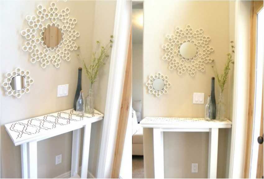 Для изготовления рамки понадобятся трубы разных диаметров, плотная бумага (картон), лобзик, клей и зеркало. На картоне обведите контур Вашего зеркала и уберите его. Теперь, нарежьте нужное количество кусочков и создайте красивую рамку для Вашего зеркала. В местах соприкосновения кусочки намазать клеем, обеспечить прилегание деталей друг к другу и оставить рамку в покое до следующего дня.