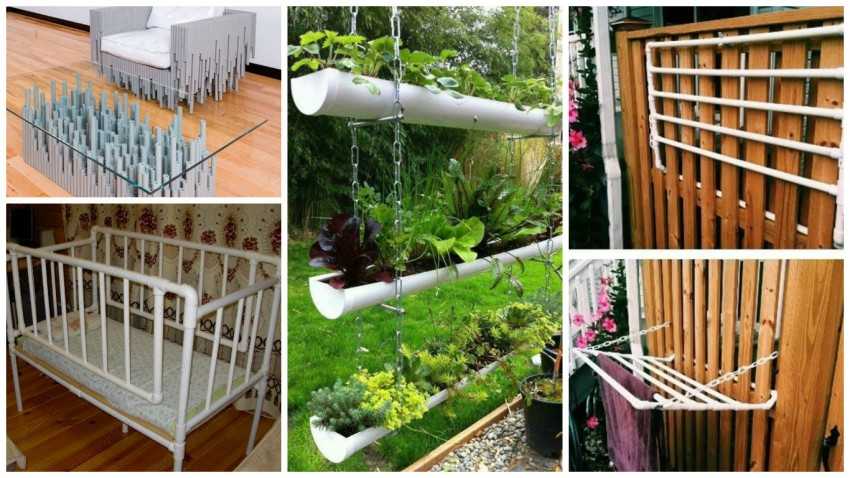 Разные трубы подходят для разных вариантов. В общем же из них можно делать многое: летнюю уличную мебель (особенно детскую), приспособления для полива огорода или крепления парников, полки, торшеры, вешалки, вазы и другое.