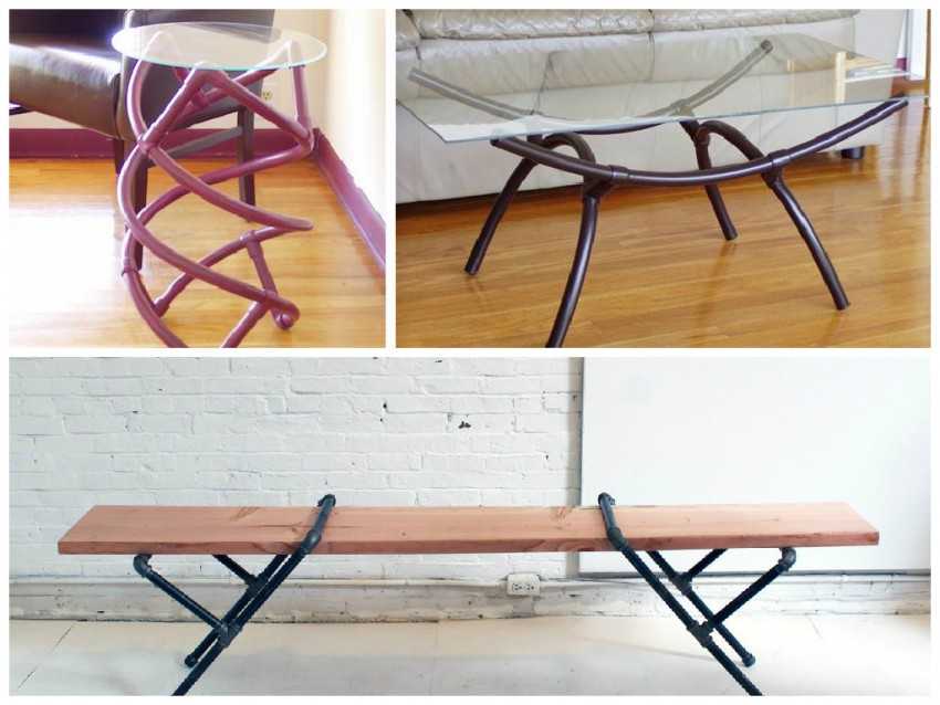Из пропиленовых труб хорошо получаются поделки, выдерживающие большой вес. Это делает их идеальными каркасами для мебели. Такой каркас достаточно будет обтянуть тканью, и получится стул, стол или кушетка. Часто это выходит дешевле покупной мебели даже в том случае, если трубы были куплены специально для этой цели, а не остались после ремонта.