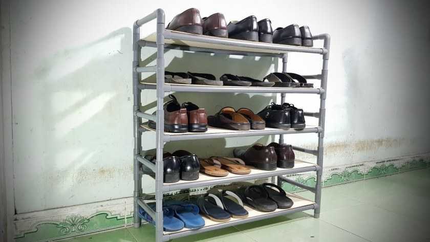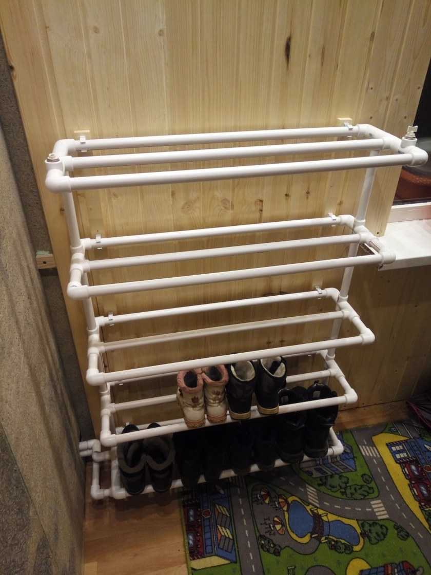 Первоначально необходимо измерить необходимую длину таким образом, чтобы там свободно помещалась обувь. Далее нарезать трубы на данные отрезки, обработать наждачной бумагой, во избежание травматизма и порчи обуви в дальнейшем.
