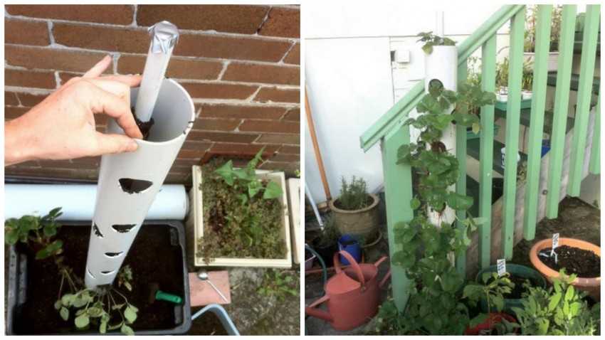 Идея 6. Вертикальные грядки из труб ПВХ для дачи
