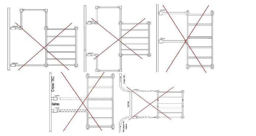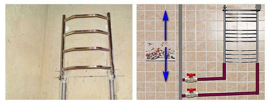 Очень плохая идея Промыть надо и полотенцесушитель и подводы к нему. Эта схема не работает На фото установка полотенцесушителя неправильная. Про него более подробно будет рассказано в следующем разделе статьи.