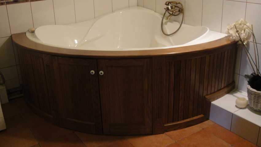 Пространство под ванной редко радует взор, ведь именно здесь расположены трубы коммуникаций, стиральные порошки и другие химические средства. И чтобы упорядочить этот уголок комнаты, используют экран для ванны – своеобразную ширму, закрывающую лицевую часть и боковые стороны до самого пола. Но кроме эстетического момента, такой девайс может выполнять и защитную функцию, уберегая ванну от случайного опрокидывания, или стать дополнительным местом для хранения различных мелочей. Современная сантехника продается уже с готовыми экранами, но если вам не удалось купить комплект или вы желаете модернизировать свою старую модель – его вполне можно сделать своими руками.