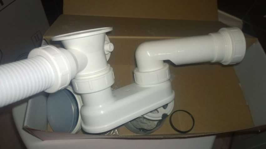 Обратите внимание, как много комплектующих у трубного сифона с переливом. Если боитесь запутаться при самостоятельной установке, лучше пригласите профессионального сантехника