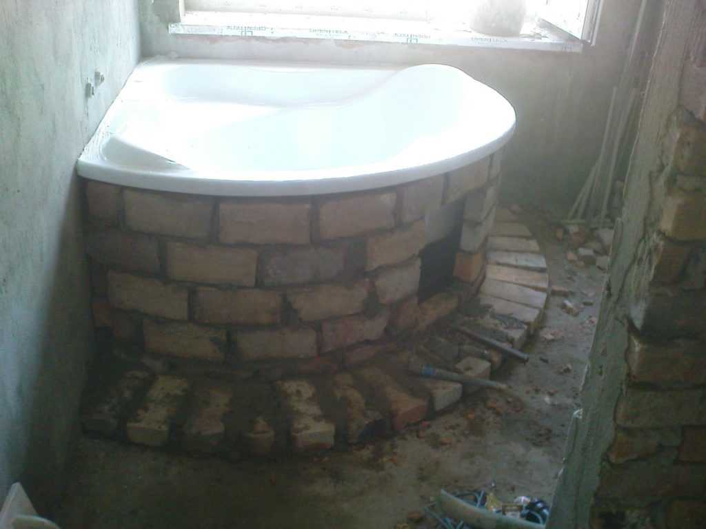 Опорное основание под акриловую ванну формируется с последующим учетом декоративной отделки.