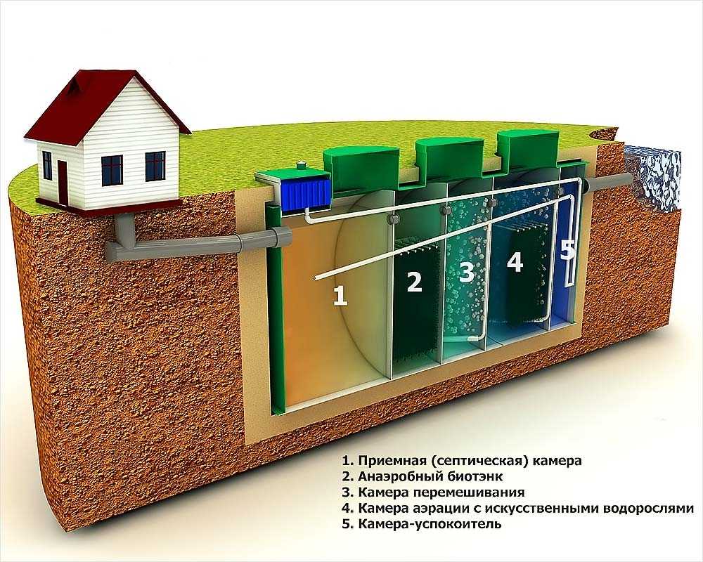 Септики, производящие накапливание и очистку сточных вводов, представляют собой небольшую конструкцию, в которой расположено три разных секции, между собой их соединяют переливные трубы: