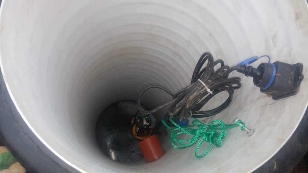 Так как туба узкая, насос в нашу КНС мы установили на первом этапе и опускали тубу уже с установленным насосом.