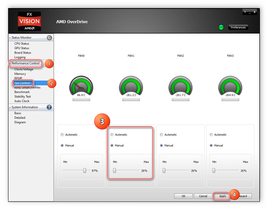 Если увеличение скорости требуется при недостаточном охлаждении, то уменьшение позволяет снизить энергопотребление и исходящие от системного блока шумы. Такое регулирование происходит подобным образом, как и повышение. Советуем обратиться за помощью к нашей отдельной статье. Там вы отыщете развернутое руководство по уменьшению скорости лопастей процессорного кулера.