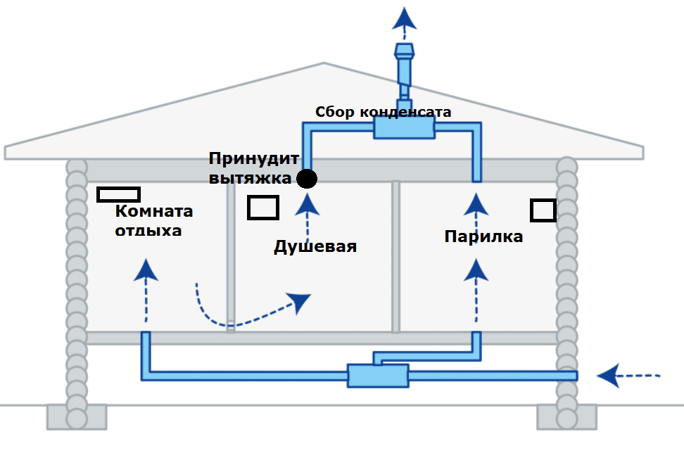 - Вентиляция сауны и парилки должна быть комбинированной, при длительном посещении одной естественной системы может не хватить.