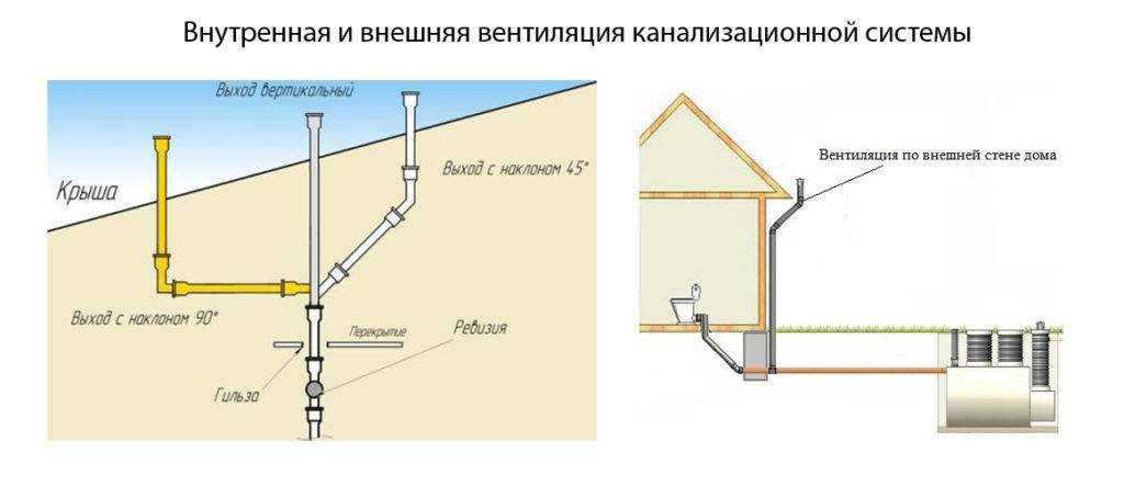 Схема внутренней и внешней вентиляции канализационной системы