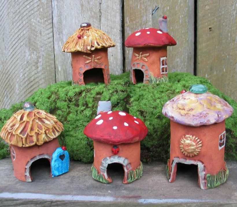 Гипсовый или цементный раствор дает возможность вылить скульптуру любой формы и размера. Для маленьких фигурок форму делают из пластиковых емкостей, а для создания скульптуры больших размеров потребуется собрать прочный металлический каркас. При отсутствии опыта рекомендуется начинать с маленьких изделий простой формы; очень мило смотрятся композиции из живых цветов окружении гипсовых грибов с яркими шляпками, фигуры гномов или, например, черепаха у самодельного пруда.