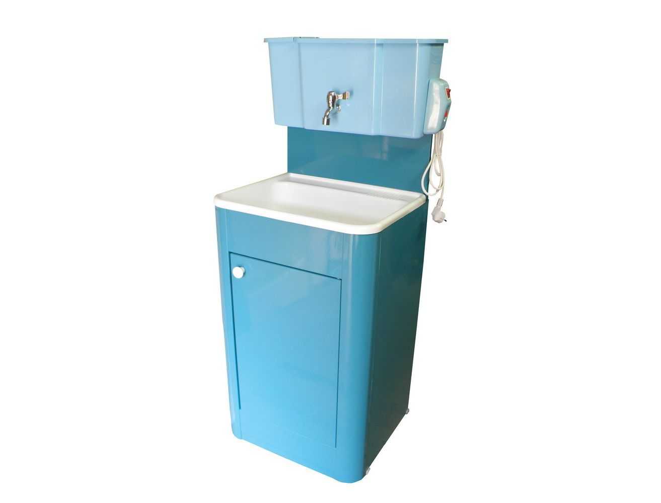 Используется умывальник не только на дачном участке, но и в гараже, помещении автосервиса, на строительной площадке и пр. Объем бака – 15л. Напряжение порядка 220 В, мощность –1,25 кВт. Стоит недорого за счет компактности и качества материалов. Выполнен из пластика, корпус мойки – нержавеющая сталь. Модель имеет тумбу из ламинированного ДСП.