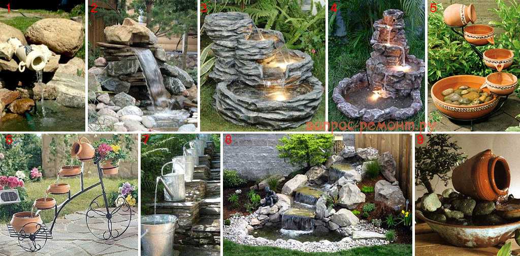 Прежде чем начать работу по сооружению конструкции, нужно определиться с подходящей разновидностью. Фонтаны отличаются размерами, формой, используемыми материалами. Делая выбор, учитывают площадь участка, ландшафт, стилистику оформления двора.