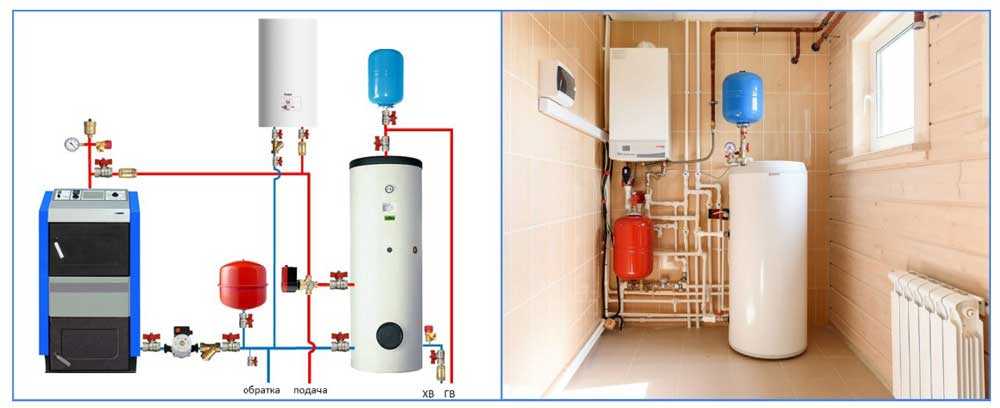 Рис. 11 Гидробак с бойлером косвенного нагрева – схема и пример размещения