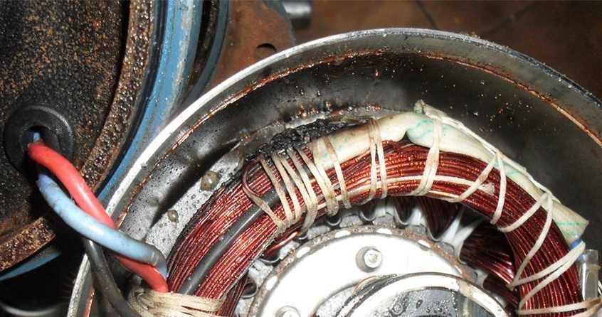 Подгорание обмотки статора из-за попадания воды в двигатель