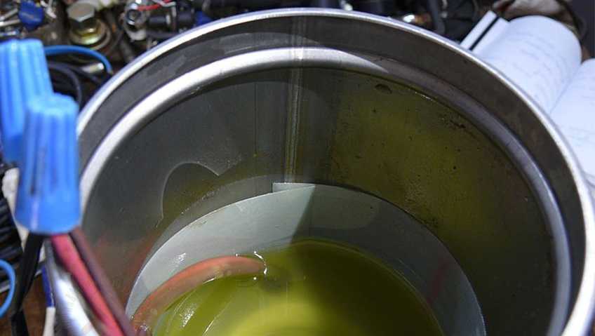 Все двигатели скважинных насосов наполнены маслом, выполняющим смазывающую, охлаждающую и диэлектрическую функции. Масло используется специальное пищевое, но оно имеется в свободной продаже. Признаками низкого качества может быть мутный цвет масла в случае смешивания с водой, потемнение или наличие механических примесей, а также недостаточный уровень. Если масло в норме, его нужно слить в чистую сухую ёмкость, оставив корпус мотора на 15–20 минут, пока остатки полностью не стекут со стенок. Недостаточная наполненность двигателя маслом говорит об износе сальниковых уплотнений.