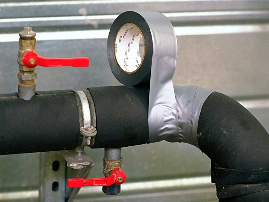 - надевают на трубу теплоизоляционный материал и закрепляют все скотчем;