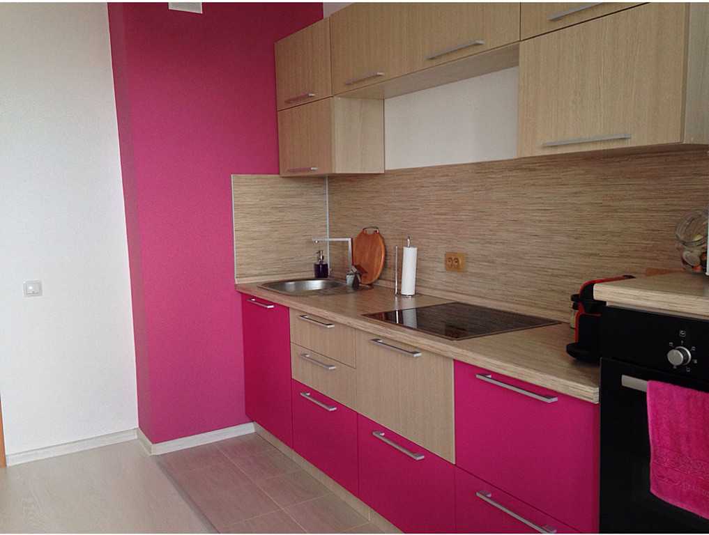 Если вы хотите создать изысканный и мягкий, уютный интерьер, сочетайте насыщенные оттенки фуксии с кофейным, темно-бежевым. Необходимо слегка осветлить кухню? Выбирайте светлый беж песочных и кремовых тонов.