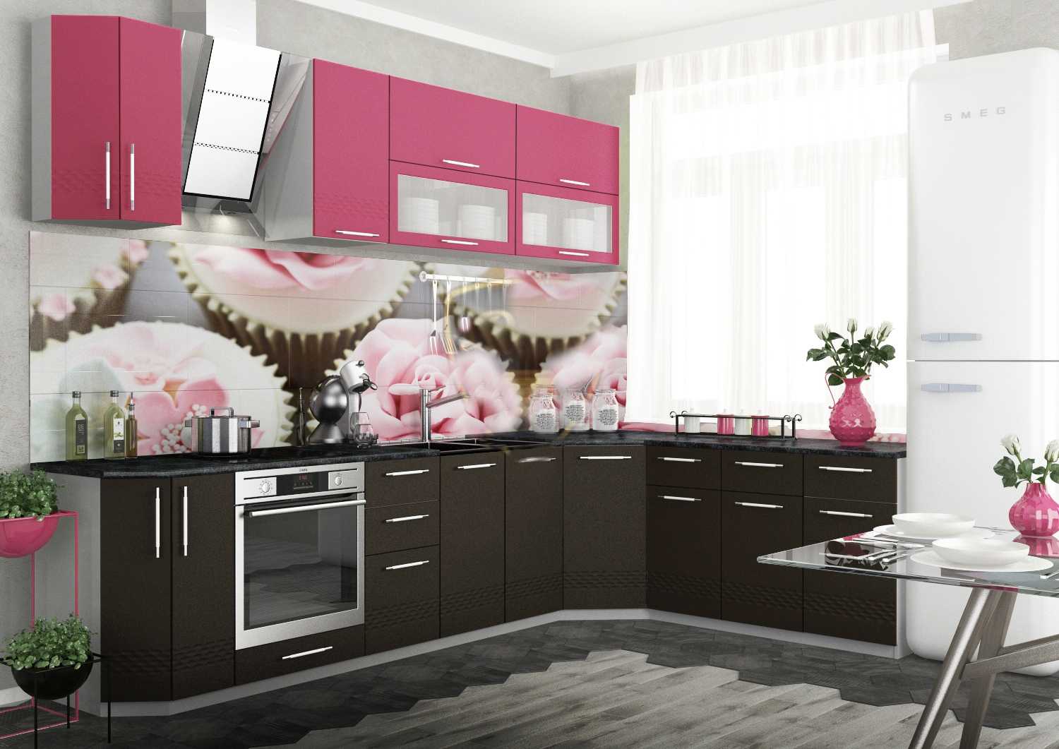 Коричневые, древесные оттенки тоже подходят для кухни в цвете фуксии. Используйте преимущественно теплые тона, иначе помещение получится слишком строгим, несмотря на яркость пурпура. Хорошо зарекомендовали себя венге, молочный шоколад, кофейные оттенки.