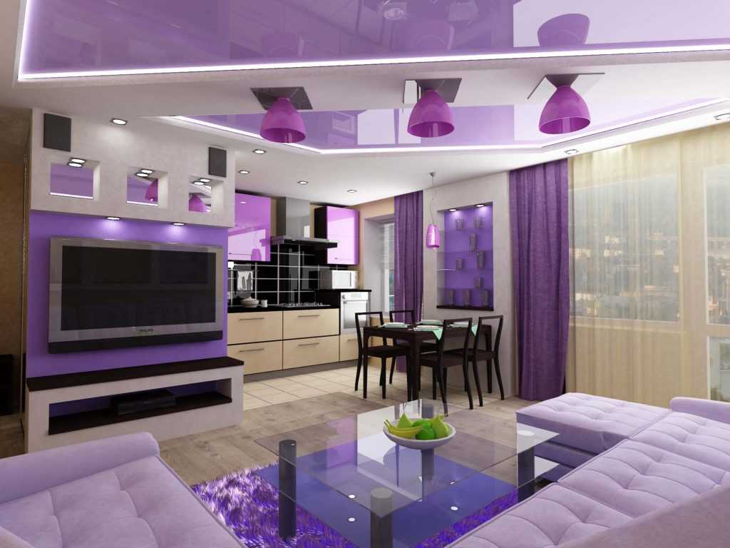 Важно также помнить, что фиолетовая гостиная, независимо от насыщенности основного тона, требует грамотного подбора остальных оттенков. Так, например, черный и темно-серый способны придать мрачности и готичности