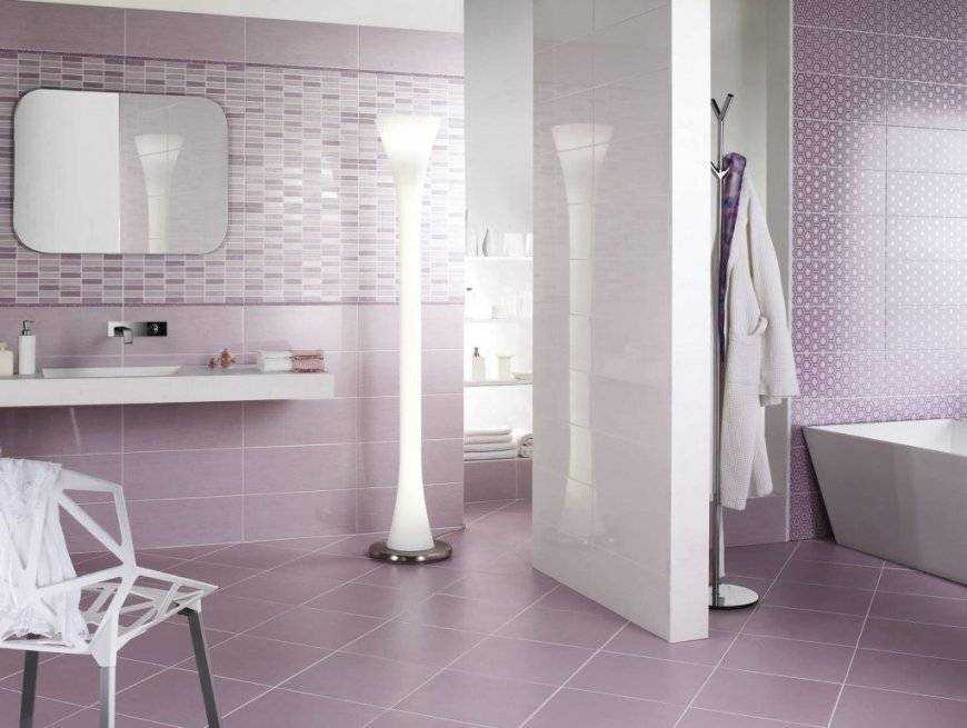 - При хорошем холодном освещении ванную можно сделать полностью лавандовой.