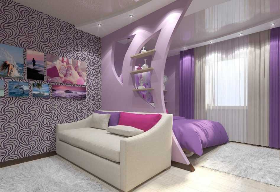 Подростковый интерьер двух девушек, предполагает различный декор, в виде постеров, фотографий и хэнд-мэйда, способствующего созданию самобытного дизайна. Для меблировки часто выбирают двухъярусные спальные места, подиумные кровати, откидные конструкции, модели-трансформеры, раскладывающиеся диваны, которые предоставляют комфортный отдых и сон.