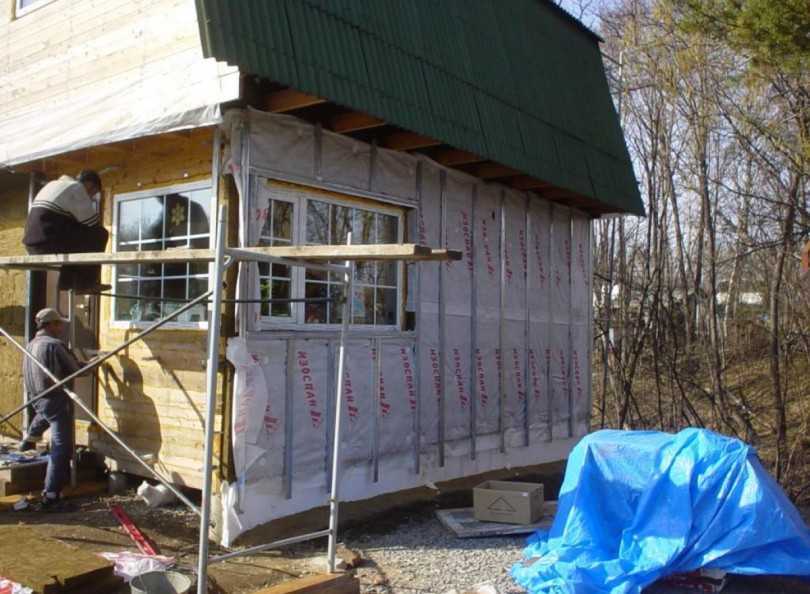 В том случае если обшивка сайдингом предполагает теплоизоляционный слой необходимо позаботиться о небольшом зазоре для обеспечения естественной вентиляции конструкции.