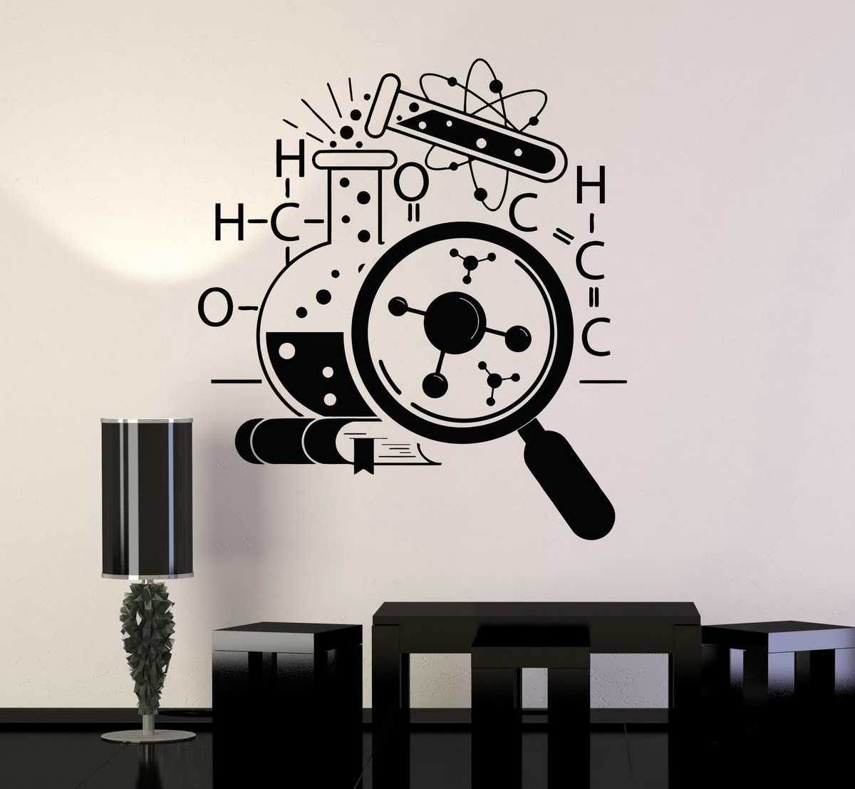 - Для рабочей зоны школьника. Тут можно реализовать не только художественную функцию наклеек, но и практическую, разместив на стене формулы, таблицы, матрицы и прочую полезную для школьника информацию. По мере перехода из класса в класс наклейки можно менять в соответствии с изучаемой программой.