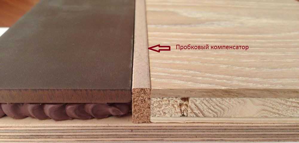 Зачастую пробковый компенсатор устанавливают между паркетом и плиткой, но встречаются и случаи, когда его выбирают для монтажа между плиткой и ламинатом.