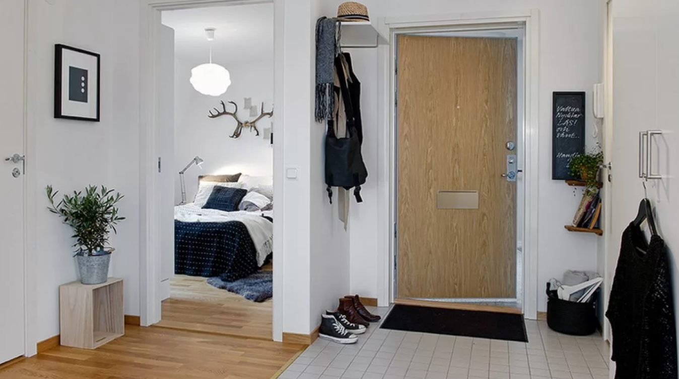 Материалы стыкуются на границе двух помещений. Например, ванной комнаты и коридора, коридора и кухни, спальни и балкона. Обычно два покрытия совмещаются под дверью, разделяющей помещения, и оформить переход можно при помощи простого и эффективного решения – декоративного порожка;