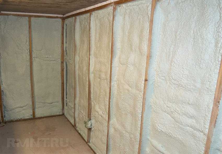 Пенополиуретан, наносимый на поверхности методом напыления. Нуждается в ограждении.