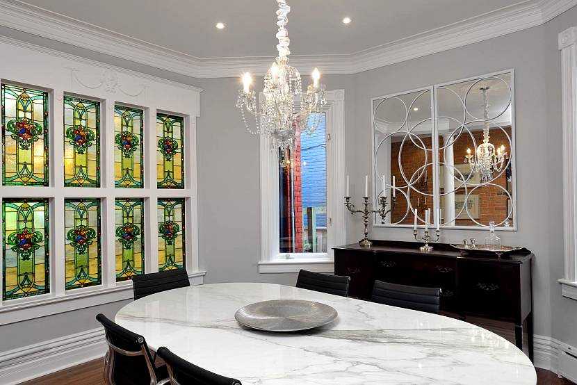 Проходя сквозь разноцветное стекло, солнечные лучи будут очень необычно играть на предметах интерьерах, стенах и мебели. Такое освещение сразу преобразит даже старую и поднадоевшую мебель. Для витражей больше подойдут большие и светлые комнаты, такие как гостиная или спальня.