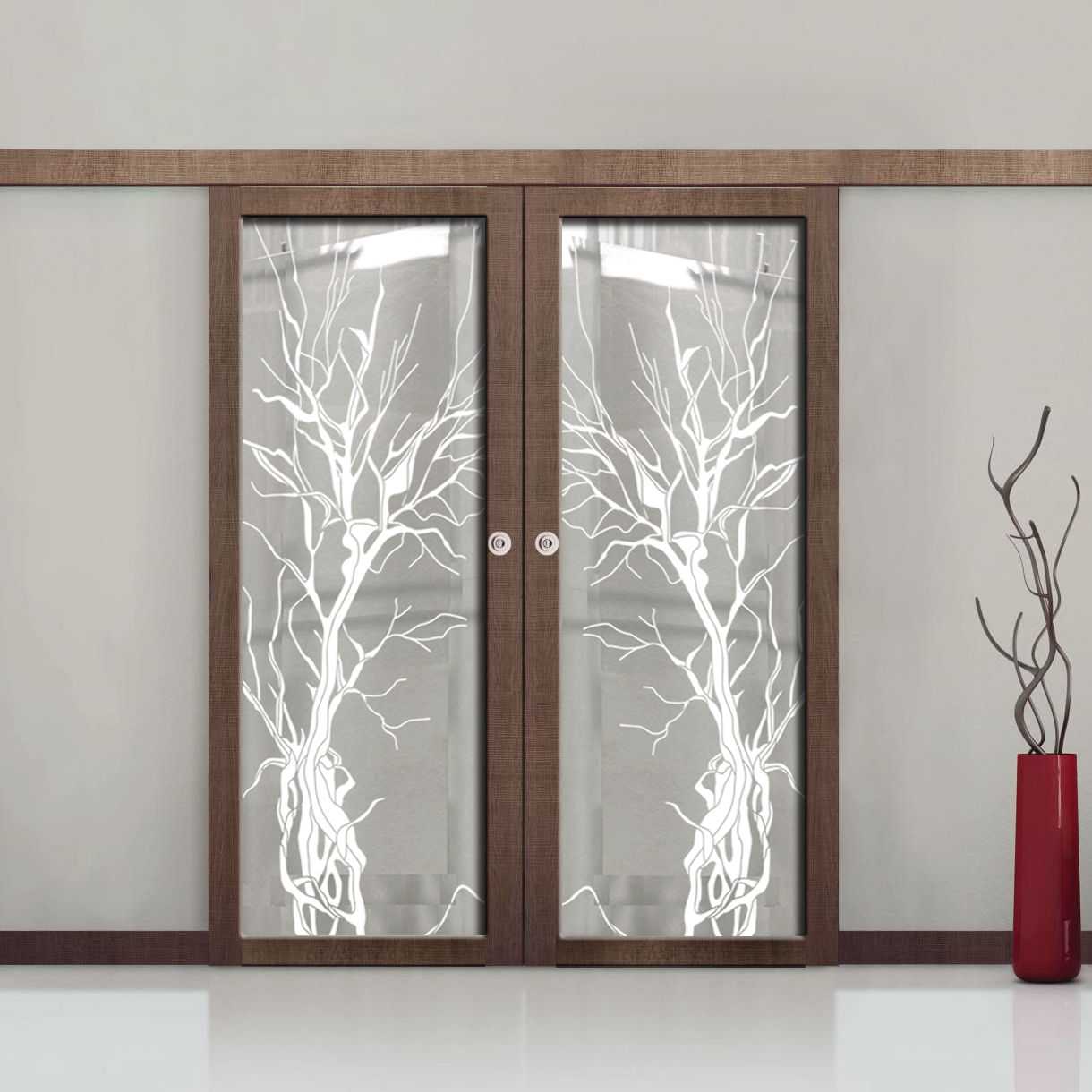 Стекла, изготовленные с применением этой техники, получаются полупрозрачные и наиболее часто их используют при изготовлении межкомнатных дверей или различных перегородок.