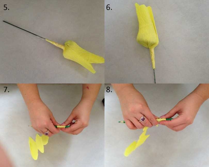 Теперь, по-прежнему не разъединяя лепестки, скрутите свободный конец каждого из них в жгутик: