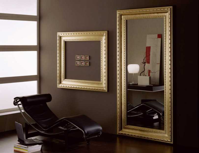- беспроигрышным вариантом будет использование зеркальных рам, которые идеально сочетаются со всей стилистикой интерьерного решения помещения.
