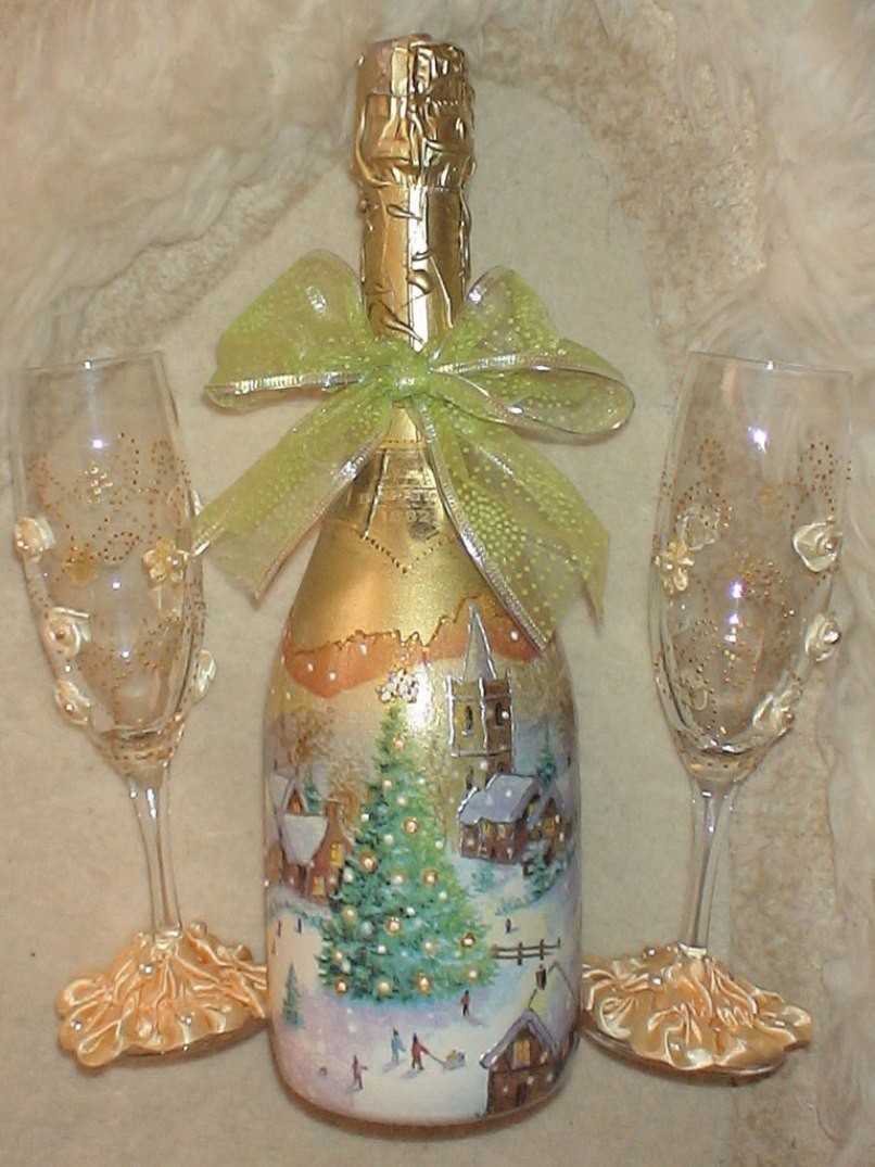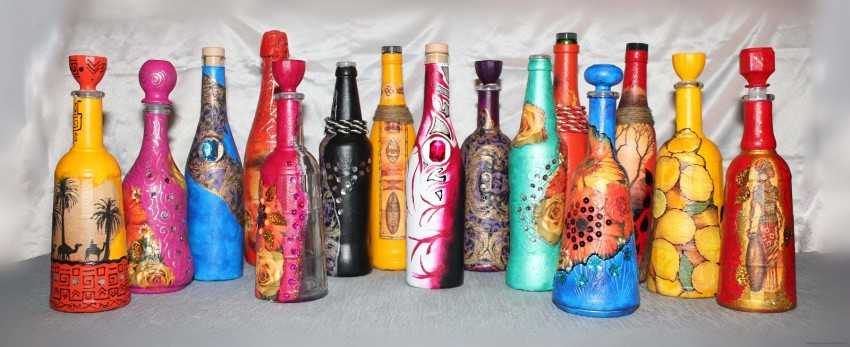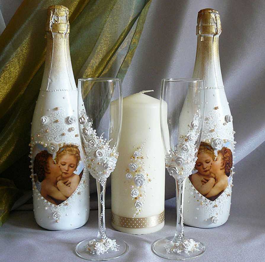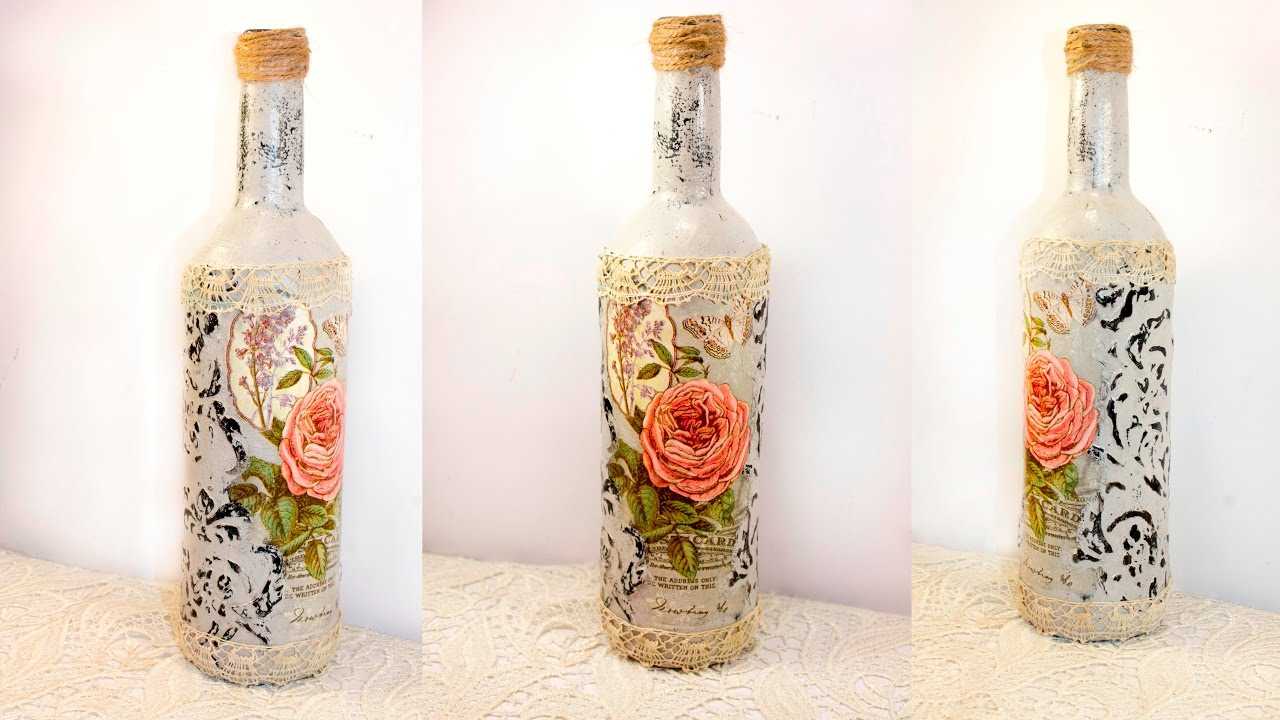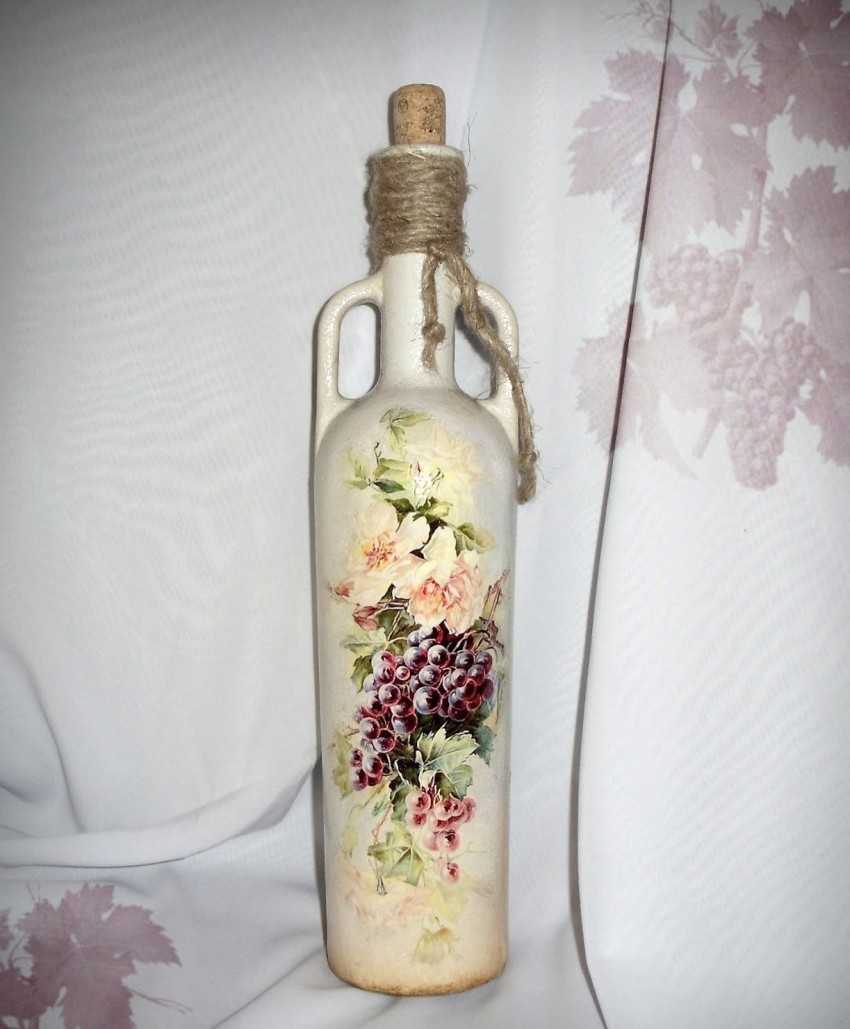 Декупаж бутылок — пошаговая инструкция и описание хода работ по украшению различными материалами (110 фото)