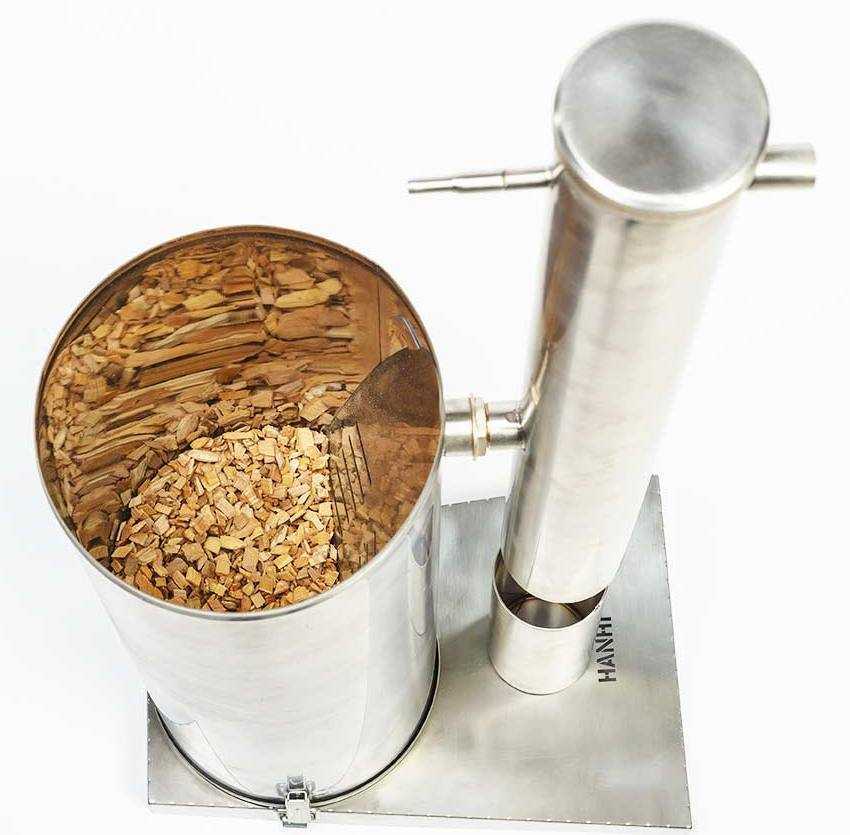 Немаловажен и размер измельчённого дерева: так, для более мелких опилок нужно добавить в конструкцию пружину, позволяющую проходить дыму беспрепятственно. Более крупные элементы таких усовершенствований не требуют.