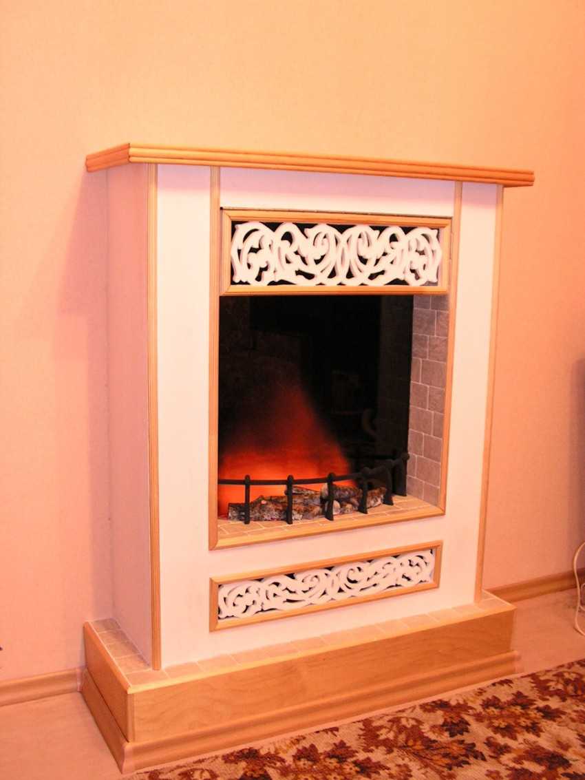 Деревянный камин можно изготовить своими руками. Но если навыков обращения с деревом нет, то и от этого варианта лучше отказаться либо нанять профессионалов. Если в доме найдется старый ненужный комод, то его можно сделать основой для камина, к которой в последующем прикрепляются необходимые элементы.