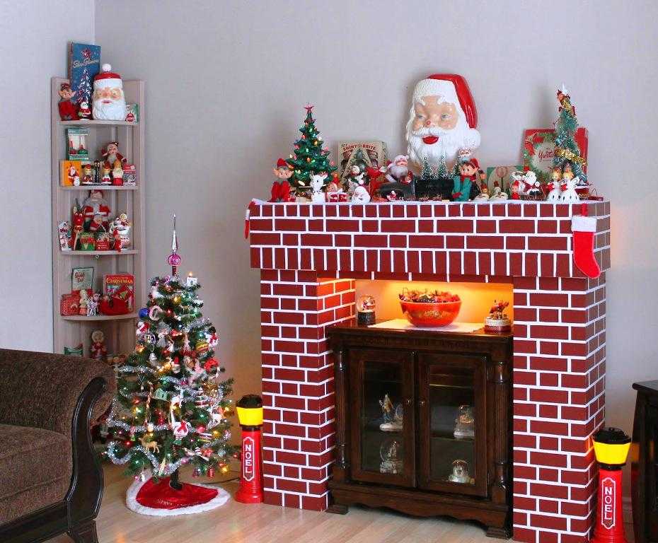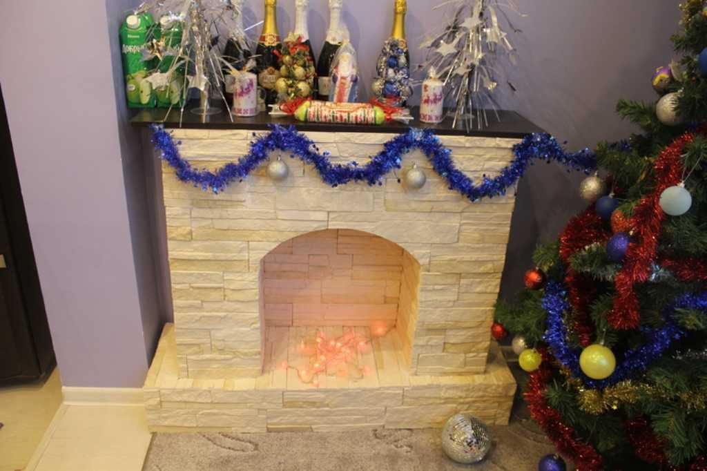Такая идея отлично подойдет людям, которые хотят украсить небольшую квартиру. Даже игрушечный камин небольшого размера, наряженный мишурой или парой елочных игрушек, создаст ощущение приближающегося Нового Года и Рождества. Такую конструкцию можно будет поставить на подоконник, и она наполнит комнату мистическим ожиданием чуда.