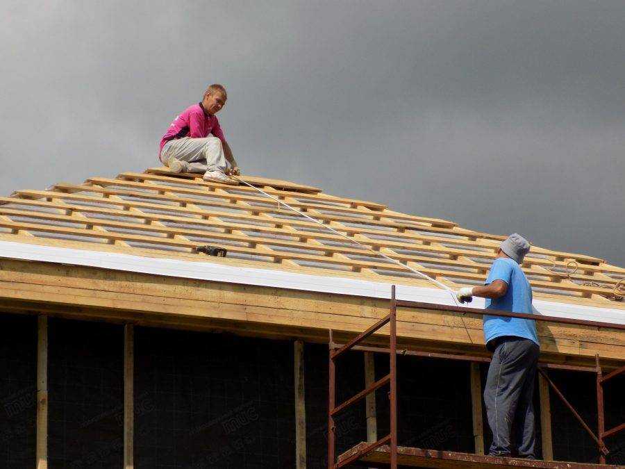 Обязательна организация вентиляции, поскольку влага хоть и в ограниченном количестве, но все равно попадает под кровлю. Вентиляция помогает ее испарению и сохранению сухости в подкровельном пространстве. Оптимальный вариант – это гидроизоляция стропил на высоте до 40-50 мм по брусу, чем обеспечен зазор между изоляционным материалом и обрешеткой.