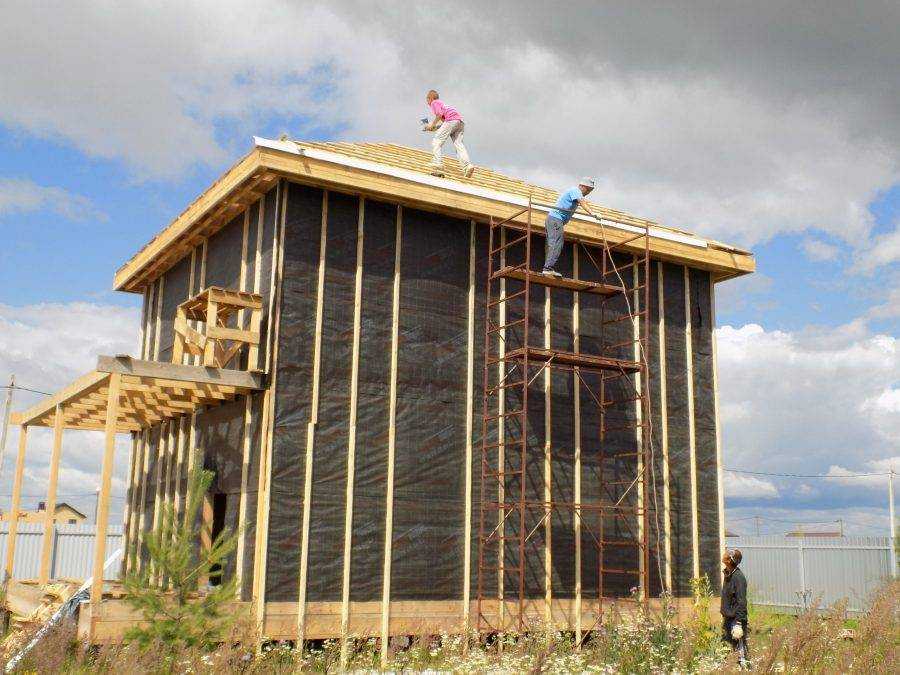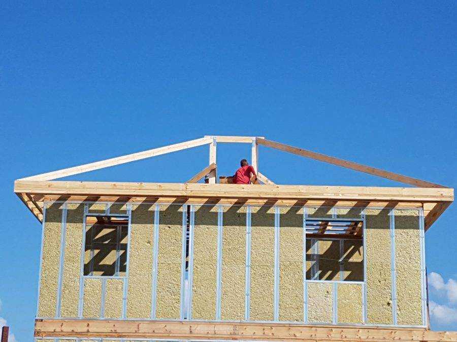 Шаг 1. Первым делом устанавливаются стропила крыши, то есть создается основной каркас.