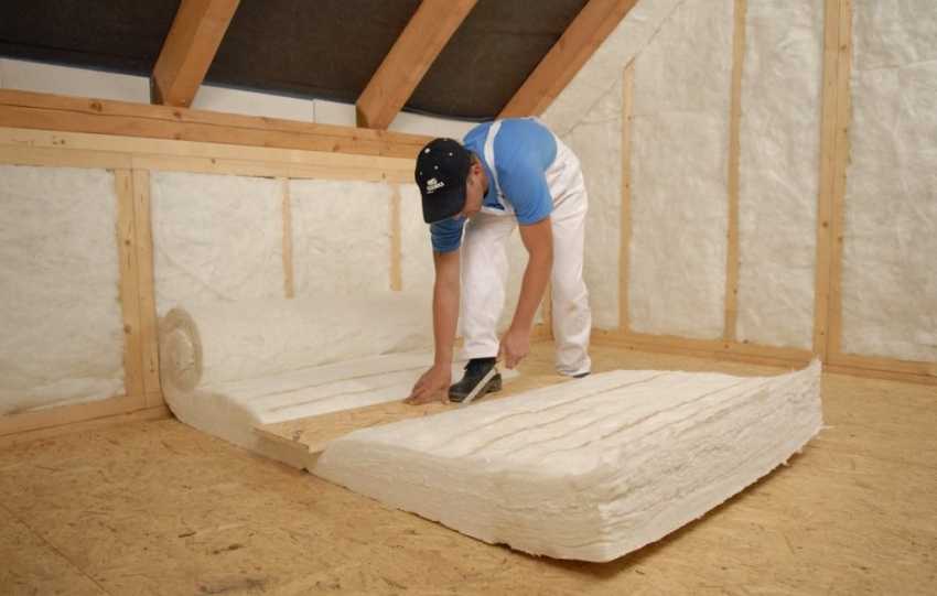 Под скатами крыши обязательно монтируется толстый слой теплоизоляции