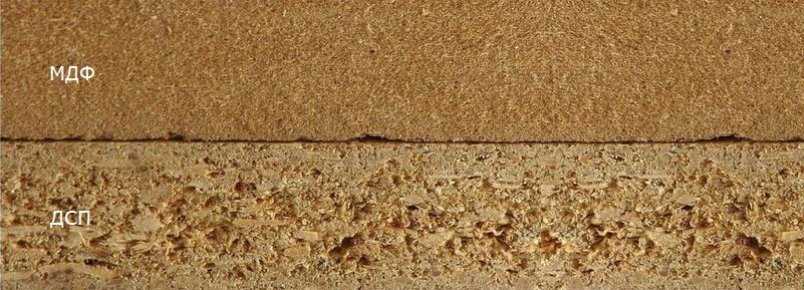 Для большей наглядности отличий между двумя материалами можно сравнить структуру ДСП с неоднородным сырьем, пропущенным через блендер, а МДФ – с продуктом из мясорубки. Плотность плиты МДФ варьируется от 600 до 800 кг/м 3 , что в условиях повышенной влаги позволяет материалу по некоторым характеристикам превосходить даже натуральную древесину.