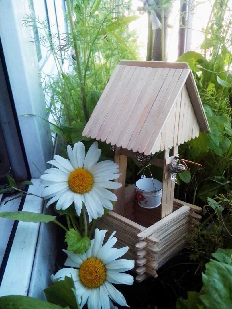 Не менее оригинально поделка будет смотреться, если в качестве элементов каркаса использовать деревянные палочки для мороженого.