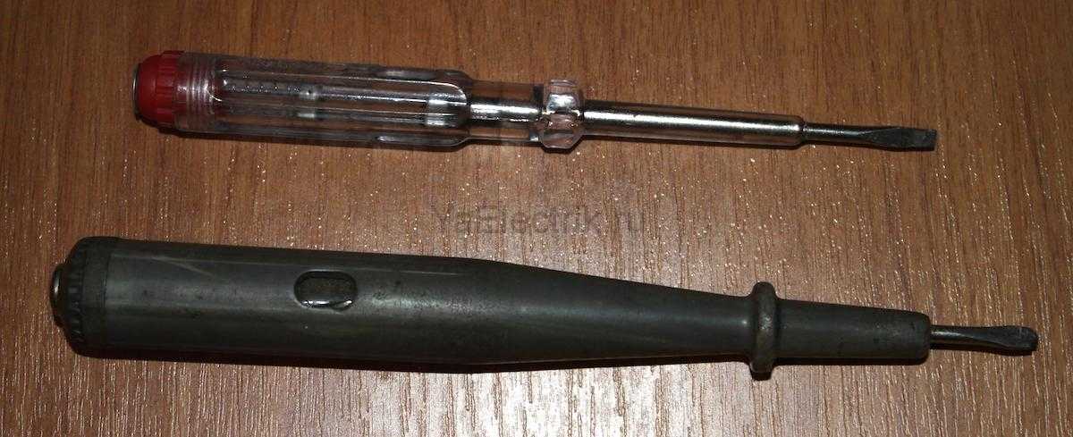 Индикаторные отвертки — дешевый инструмент для определения напряжения. Они бывают нескольких типов: