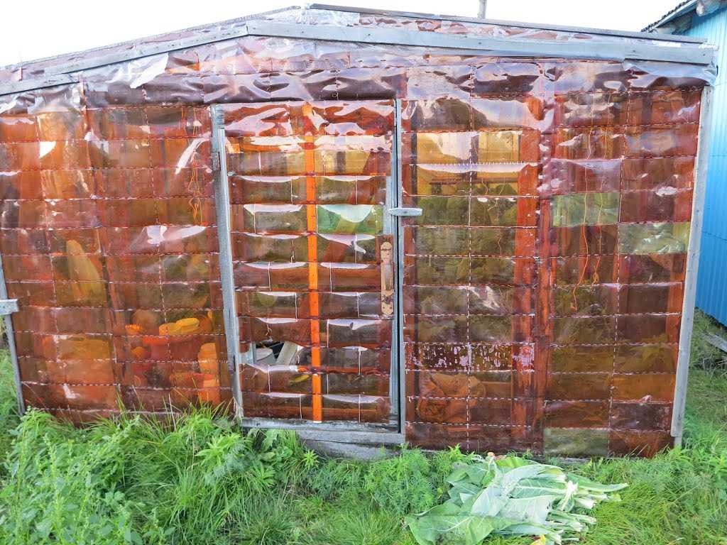 - рамы пропитывают антисептиком, обтягивают изготовленным из пластиковой тары полотном;