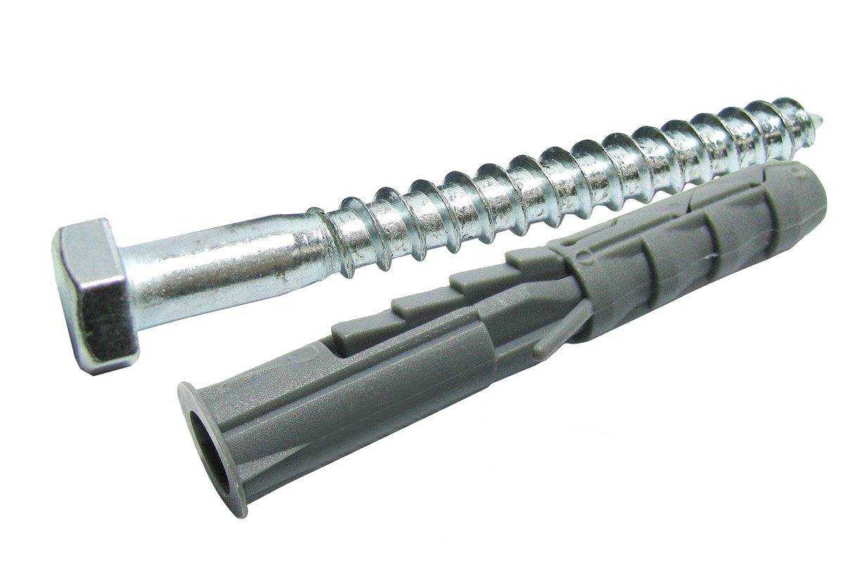 Бетон и кирпич – очень прочные материалы и при обычном крепеже выдерживают значительный вес. Проблема может возникнуть, если диаметр сверла в точности не соответствовал диаметру пробки дюбеля или диаметру анкера. Часть дюбеля, называемая пробкой, может быть выполнена из нейлона или пластика. Нейлоновые – более надежные, но их форма также имеет значение. Чем они более рельефные и чем на них больше насечек, тем лучше. Шуруп, вкручиваемый в дюбель, в точности должен соответствовать диаметру и шагу резьбы в отверстии дюбеля.