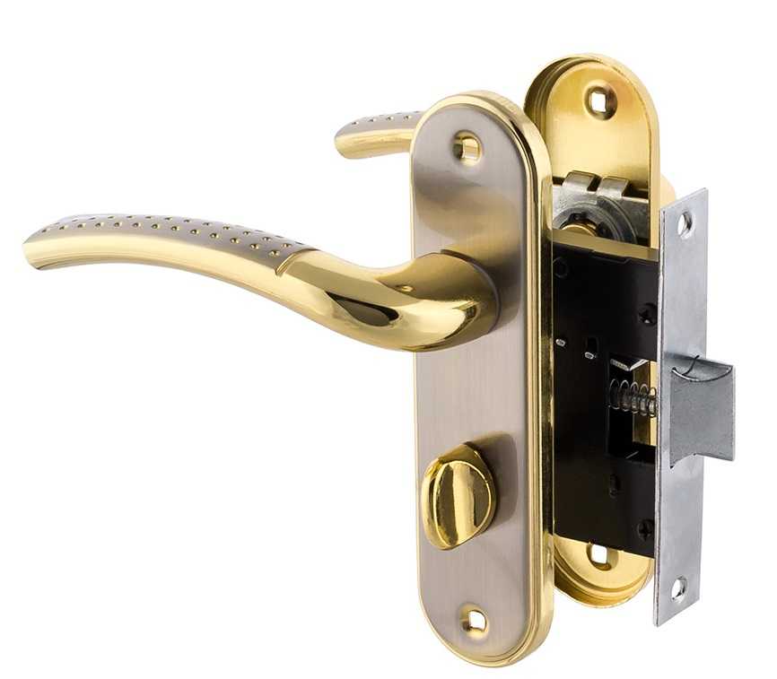 С нажимными ручками мы встречаемся чаще всего, а работают они элементарно. Каждая такая ручка состоит из двух Г-образных частей, связанных между собой стержнем. При нажатии на ручку защелка-язычок прячется, и дверь может спокойно открывать, а при отпускании ручки, язычок защелка надежно удерживает дверь. Это простой и надежный механизм, который плотно закрывает двери.