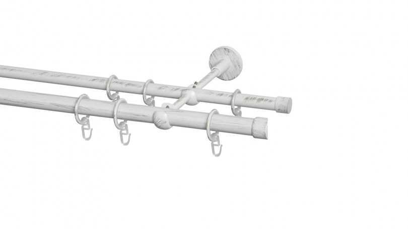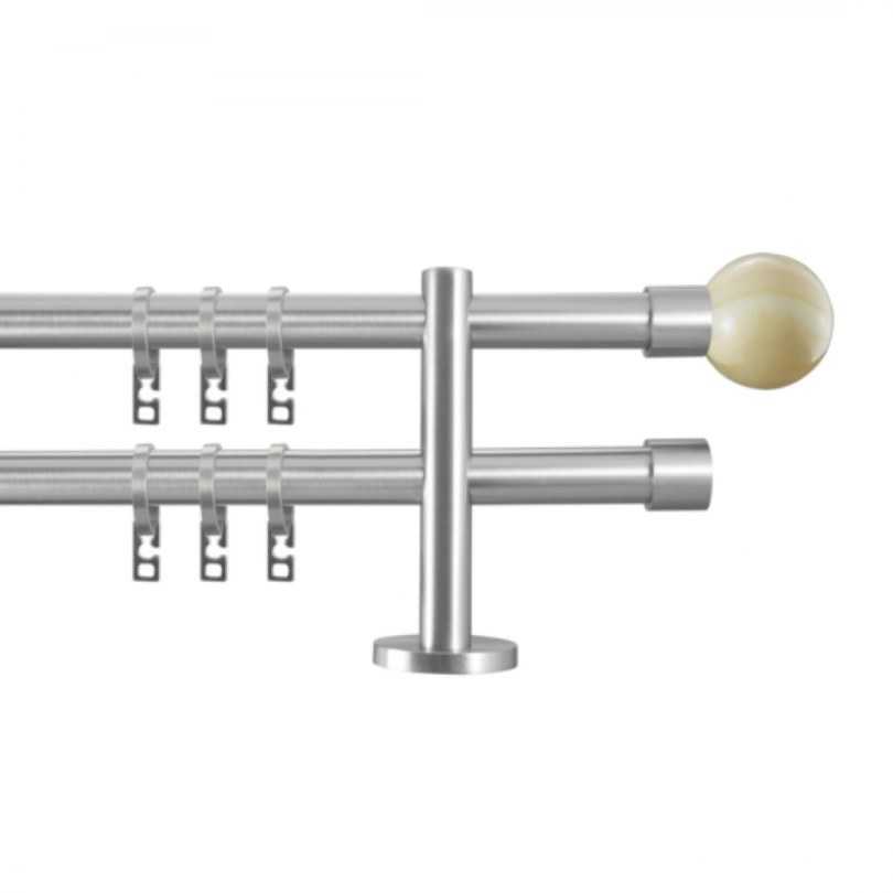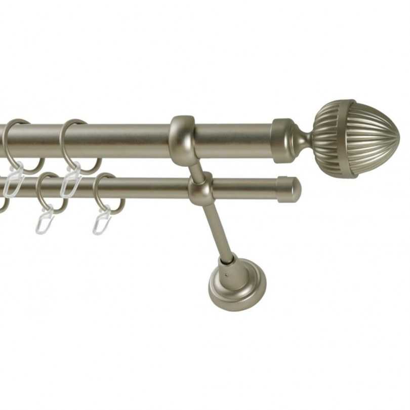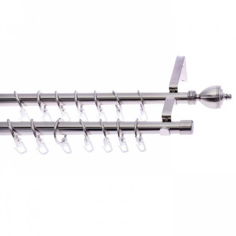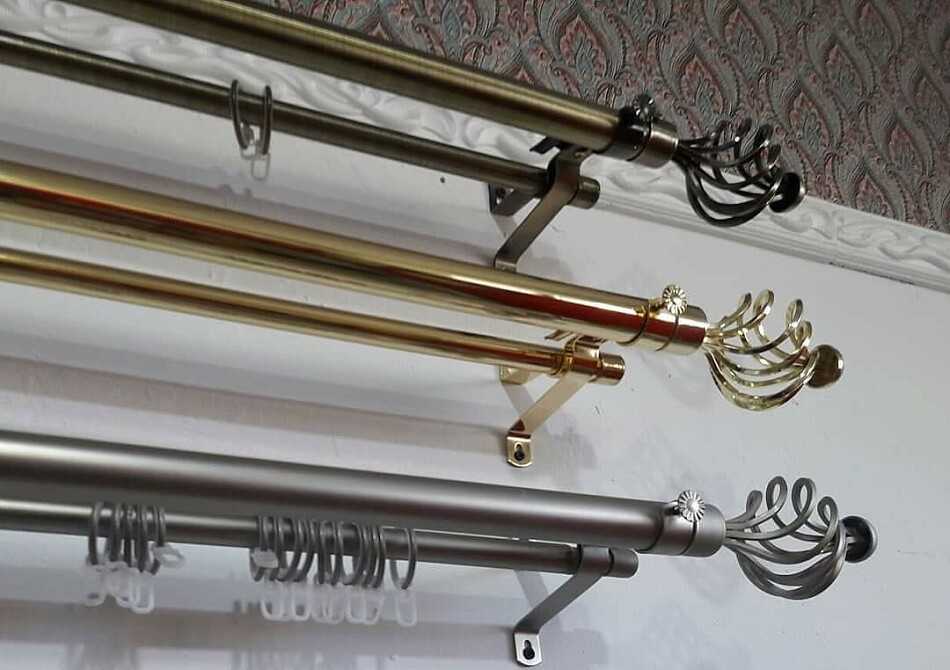 Карниз металлический двухрядный часто декорируется в матовом или глянцевом исполнении. К современным типам интерьера подходит хромированная отделка, а к классике – глянцевое оформление.